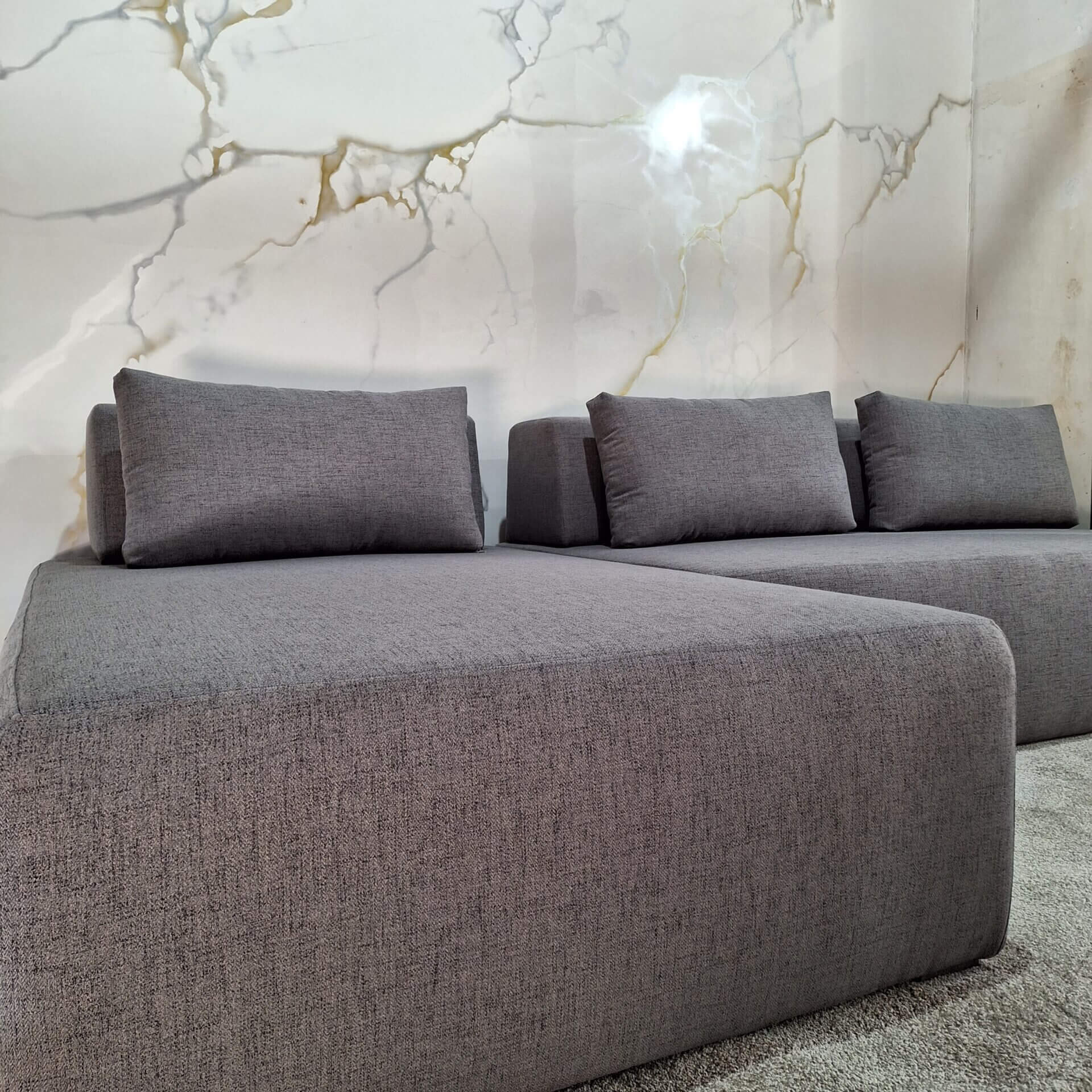 Os módulos de assento são espaçosos e extremamente confortáveis. Seu design foi pensado para proporcionar suporte ideal para longas horas de descanso, além de permitir que você configure o sofá no formato que desejar — seja em L, U ou linear.